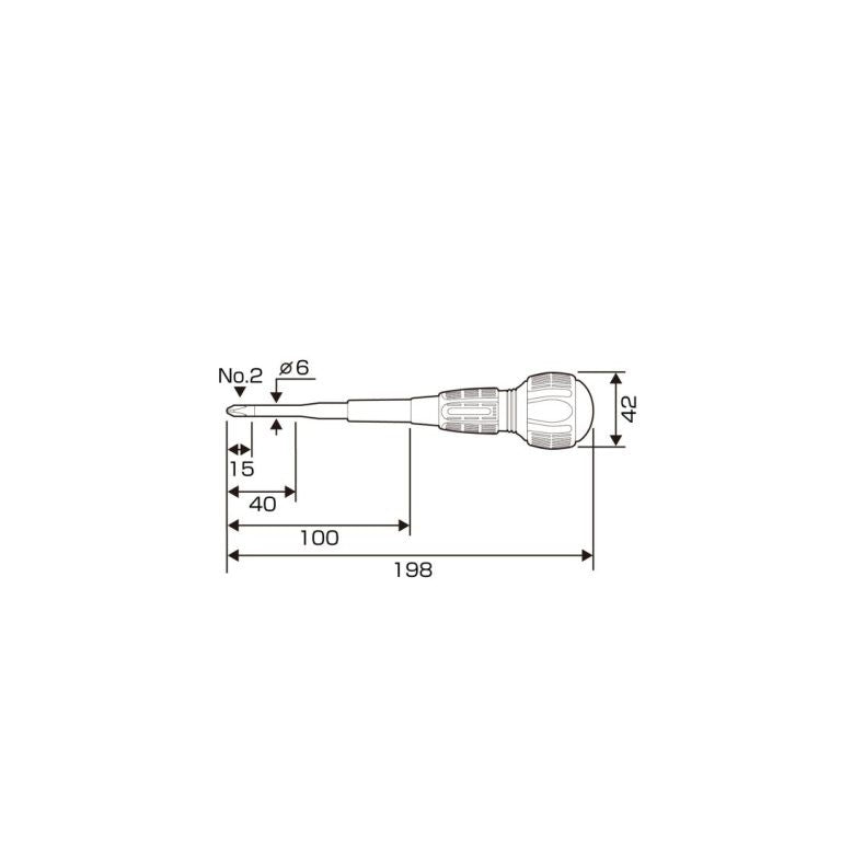 This individual screwdriver is a PH2 x 100mm with a full length of 198mm. More individual screwdrivers from this line can be found here.