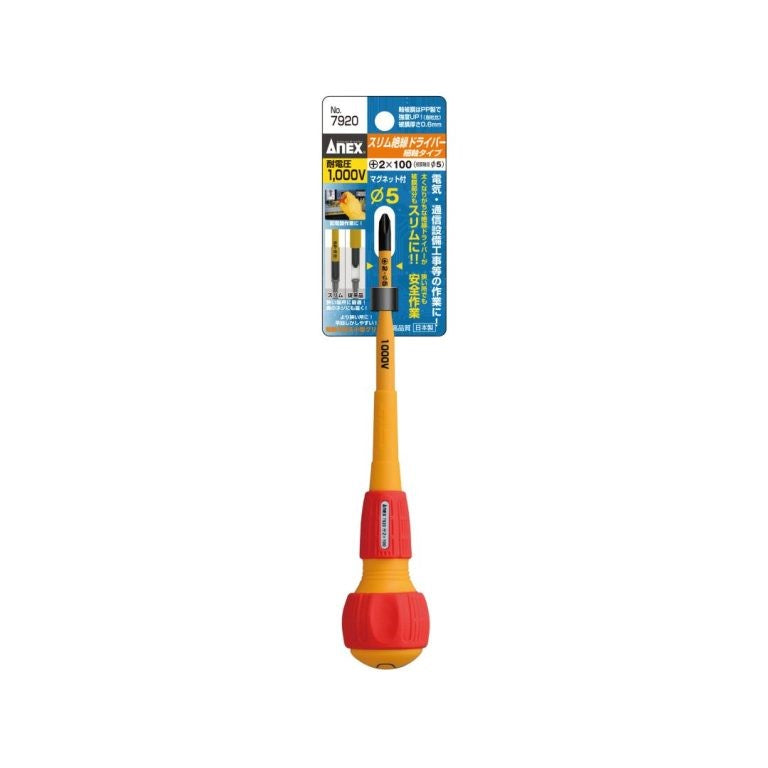 Anex 7920-2-100 PH2 x 100mm Extra Slim Insulated Ball Grip Screwdriver