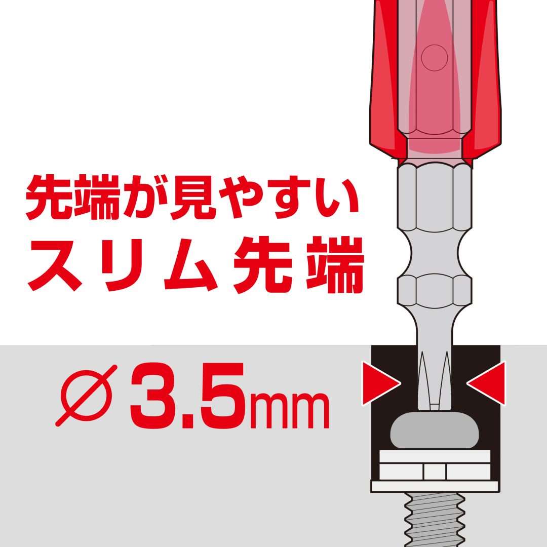 1000v insulated bit which is suitable for use on electrical installations with an electric screwdriver. Fits into tight spaces with a tip diameter of 3.5mm. These are recommended for use only with an electric screwdriver of 7.2v or less, do not use an impact driver.