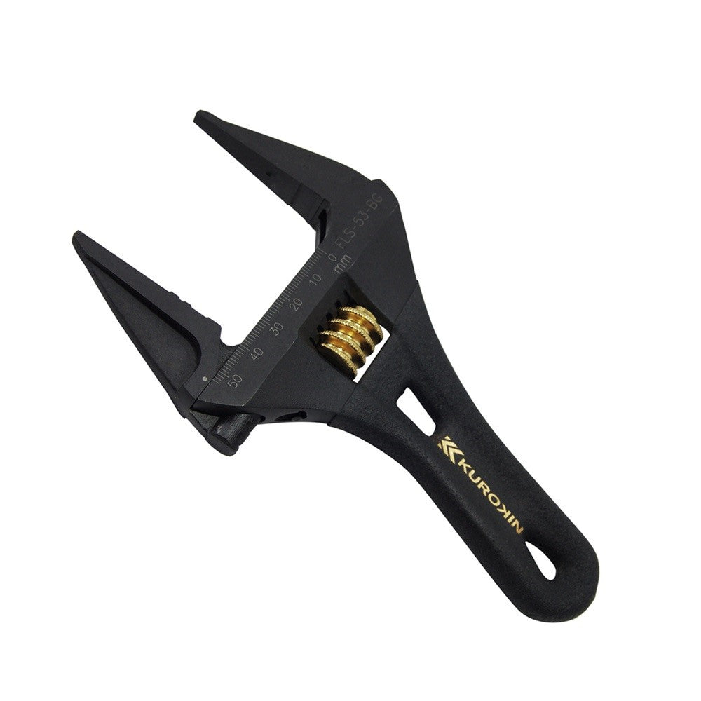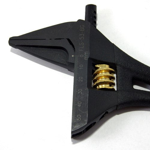 This stubby adjustable wrench has a massive 53mm maximum jaw opening, along with the no protrusion head design, the FLS-53-BG is perfect for large bolts in narrow areas. The unique jaw shape has teeth which grip the the nut, making it more difficult to damage the corners.
