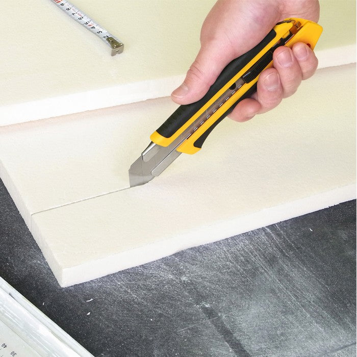 The 212B is a heavy-duty utility knife that uses 25mm blades. These blades are strong and resist warping which makes them perfect for cutting tough materials. Built for comfort and control, the 212B features a double-molded rubber handle for a secure, non-slip grip, even during extended use. It features an auto lock system for quick adjustments and easy use.