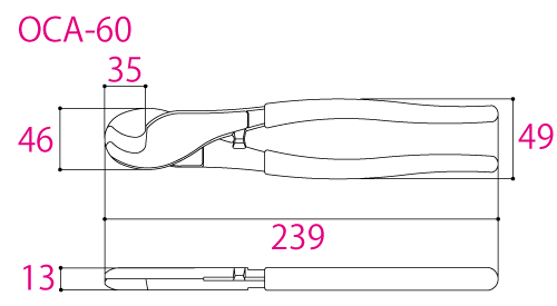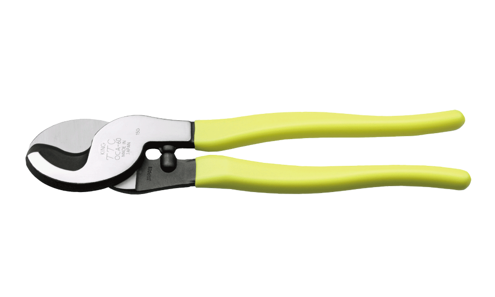 The OCA-60 is a heavy-duty cable cutter from Tsunoda. The heat treated Alloy Steel blades have a copper cutting capacity of 60mm² and can easily cut copper cables without deforming them.