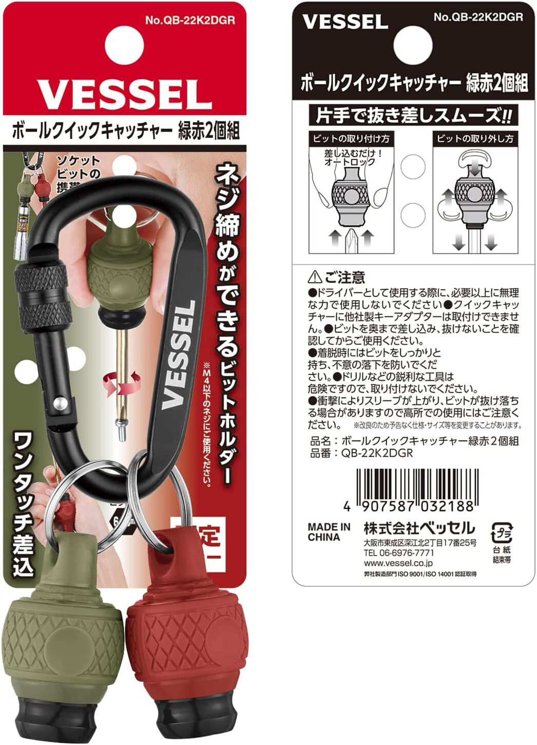 Vessel Ball Grip Bit Holder with Carabiner 1/4" Hex QB-22K2DGR Limited Edition Red/Green