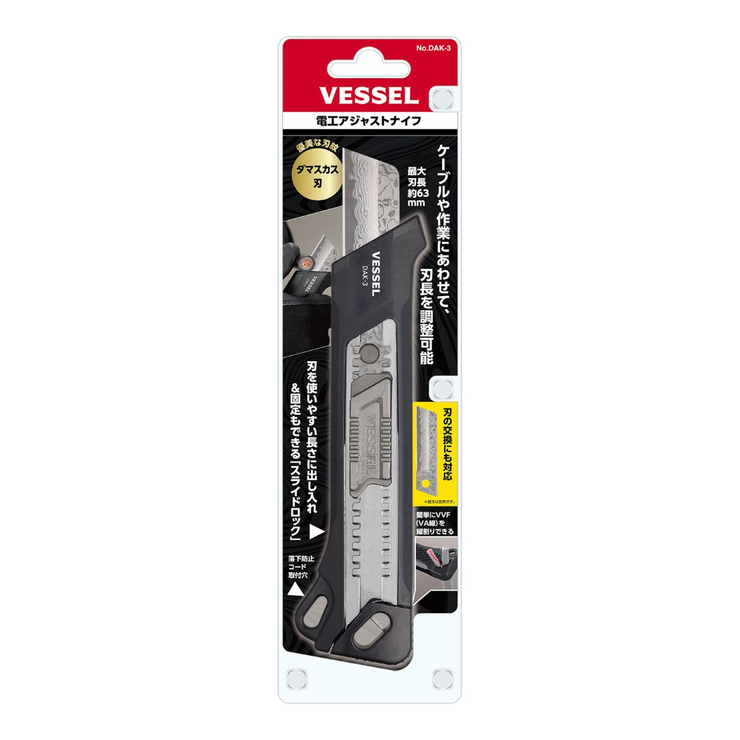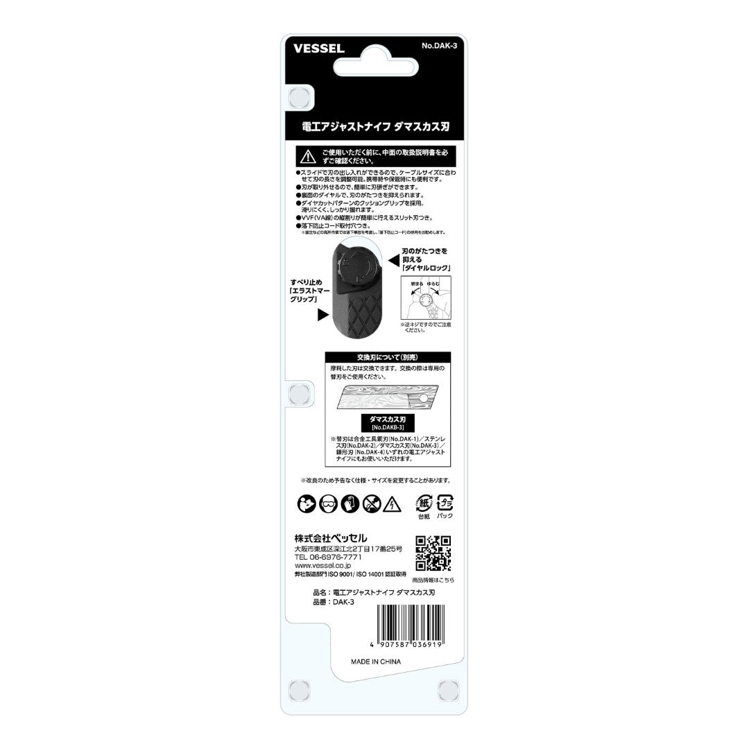 Vessel DAK-3 Adjustable Damascus Steel Electricians Knife