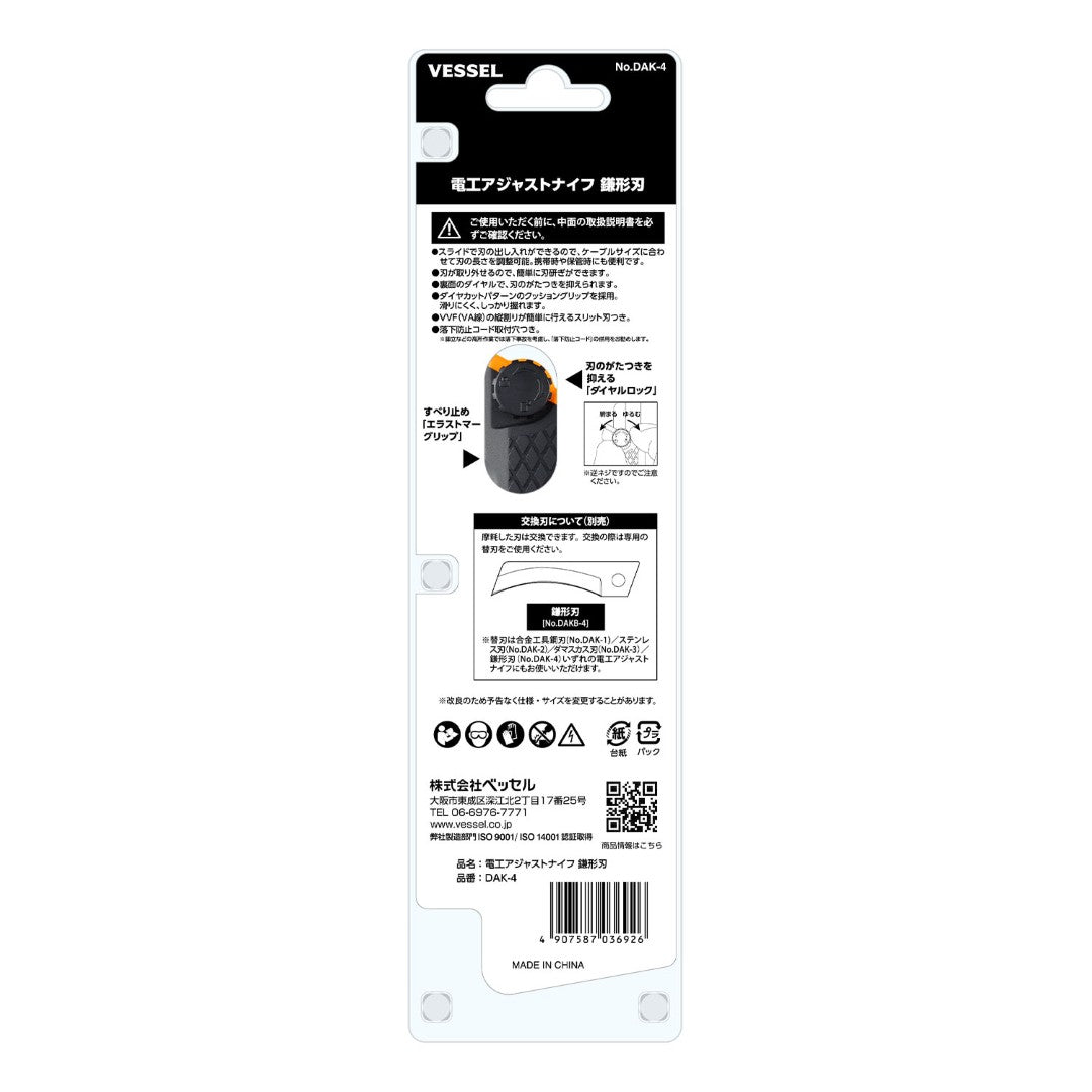 Vessel DAK-4 Adjustable Sickle Shaped Electricians Knife