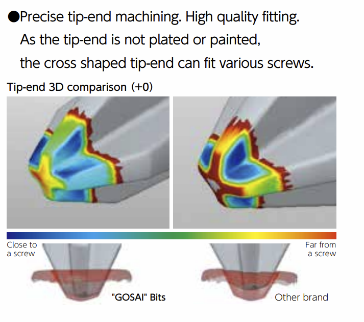 An assorted pack of hex bits from Vessel’s “GO-SAI” line. This line uses Vessel’s new and unique steel “Extra Superalloy” made specifically for bits. This material is incredibly durable and ductile and therefore are resistant to twisting and breaking. The highly precise machined tip end fits tightly into various screws allowing for a more efficient application of torque.