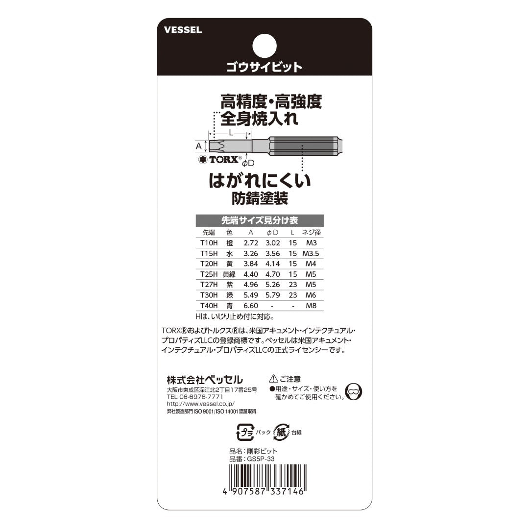 Vessel GS5P-33 GO-SAI TORX Security Bit Set 5 Pieces