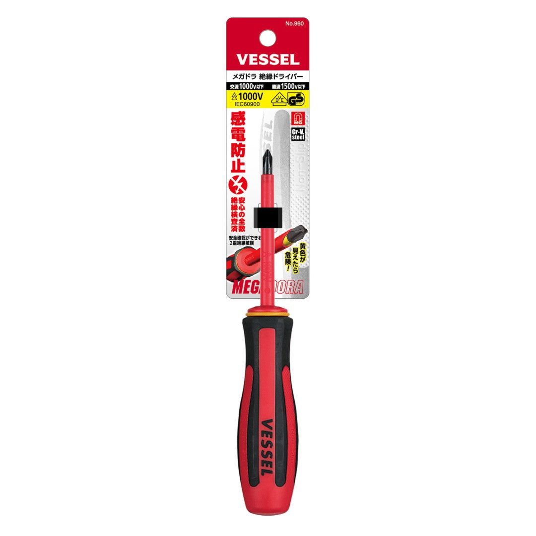 Vessel Megadora 960-1-75 PH1 x 75mm 1000v Insulated Screwdriver