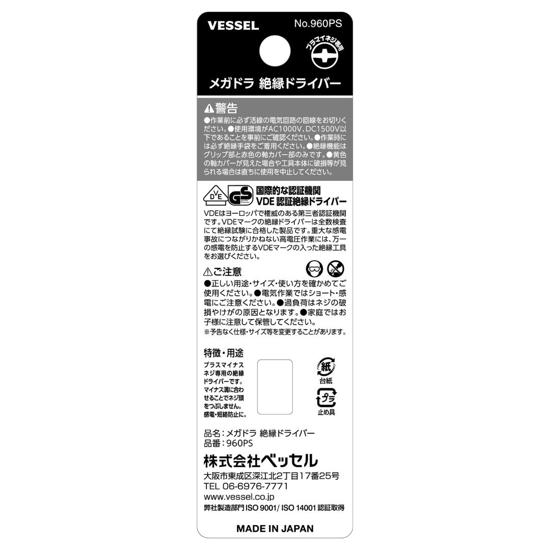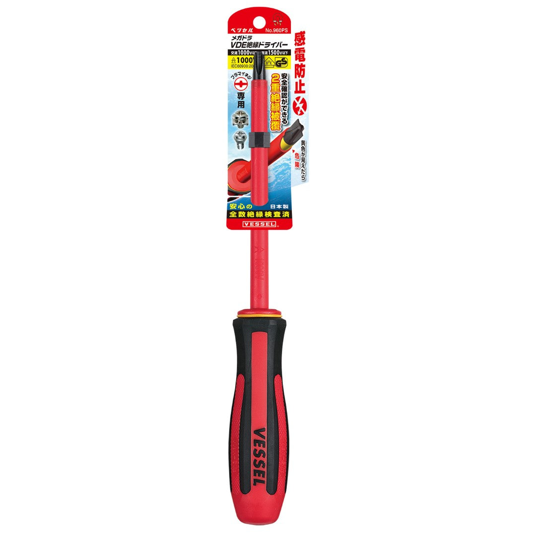 This is an individual Insulated screwdriver from Vessels flagship “MEGADORA” line, this screwdriver is 1000v VDE certified and is perfect for electrical work of all kinds. The handles are comfortable and designed for optimal contact area and feature a hard, smooth and non slip surface for maximum grip in any situation, even when hands are oily. The tips are also highly precise and magnetised for ease of use.