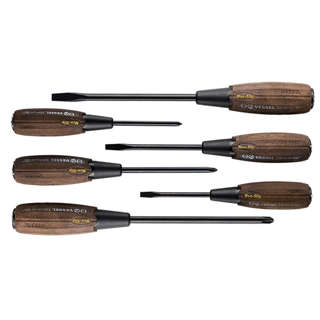 Vessel 336PS Non-Slip Wood Composite Thru Tang Screwdriver Set 6 Pieces