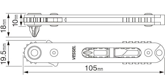 The TD-76 is a low profile flat ratcheting screwdriver well suited to hard to reach places. With a bit inserted, the head width is 18mm making it useful for squeezing through narrow crevices. As the driver is ratcheted, only a small amount of movement is required to fasten screws.